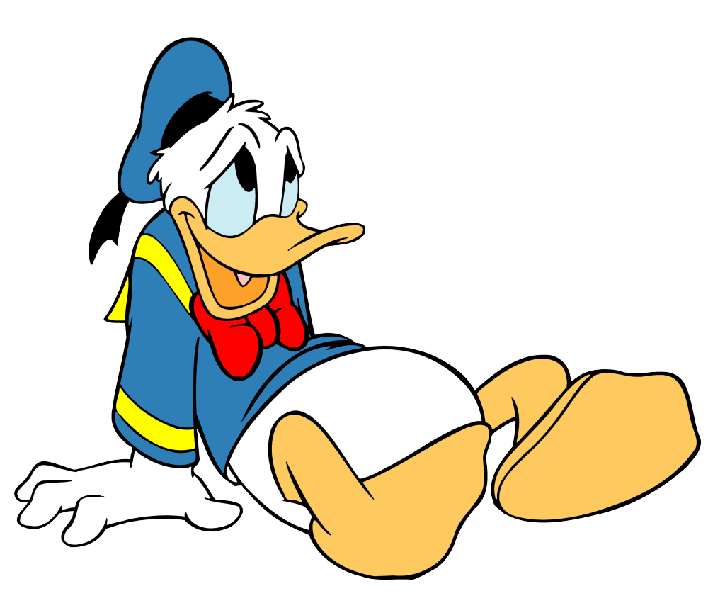 Donald er en gretten, sint and kledd i sjømannsdress.